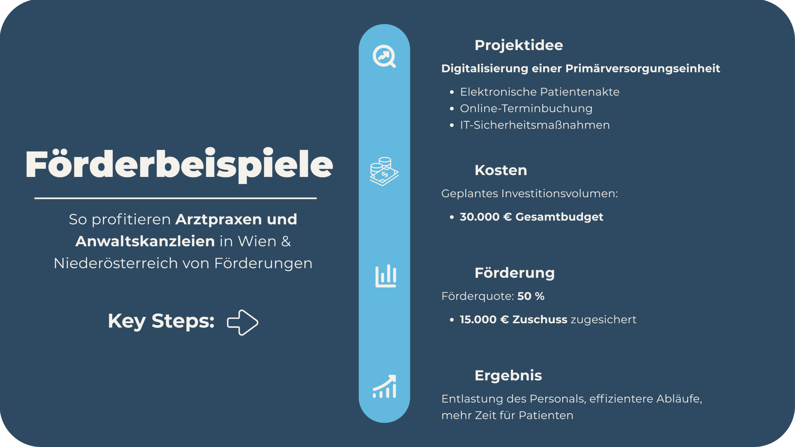 Wir unterstützen Ärzte, Anwälte und Unternehmen in Österreich dabei, Förderungen für Digitalisierung und Innovation erfolgreich einzureichen.