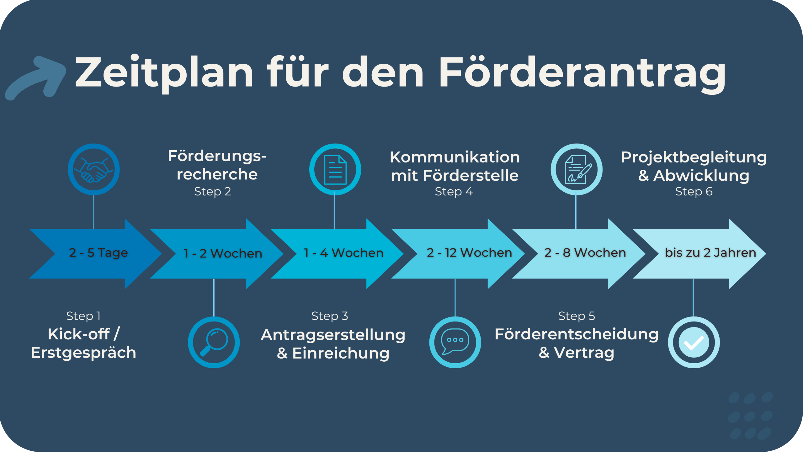 - Projektbeschreibung formulieren- Kosten- und Finanzierungsplan erstellen- Angebote einholen- Antrag einreichen